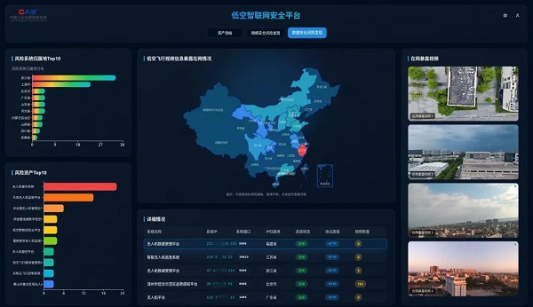 二是打造低空网络安全风险“探测仪”。平台可主动识别系统存在的各类网络安全风险隐患,对风险进行量化分析与趋势预判,为相关单位提供预警信息和处置建议,实现低空安全风险“关口前移、防患于未然”。